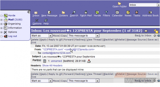 This tutorial assumes you've already logged in to Horde webmail. Now let's learn how to open an email message.