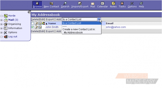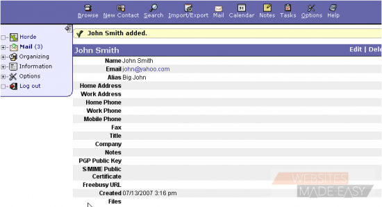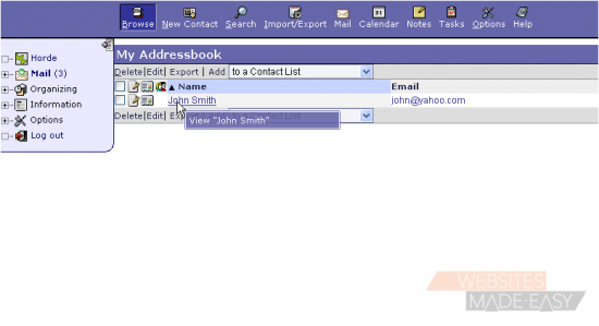 This is the end of the tutorial. You now know how to manage your contacts using the Horde address book. Click here to watch the Video Tutorial.