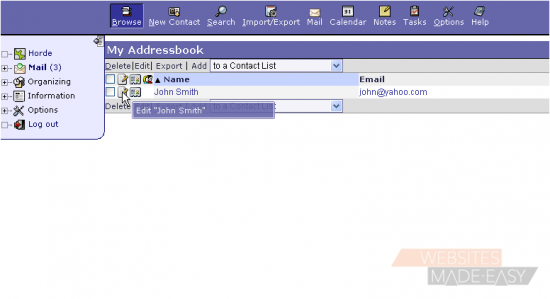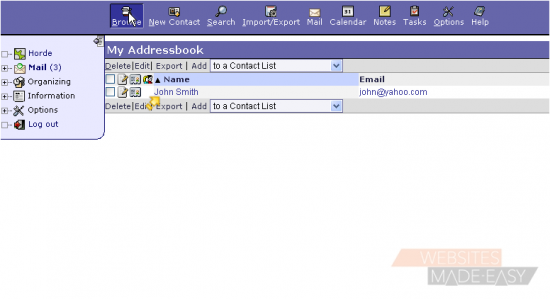 This tutorial assumes you've already logged in to Horde webmail. Now let's learn how to manage our contacts.