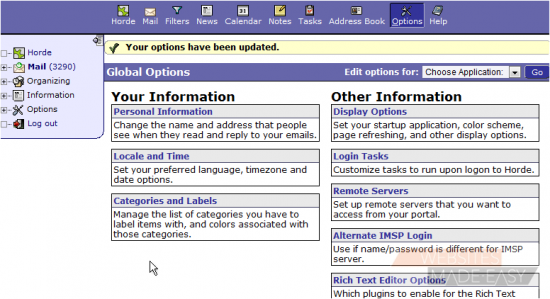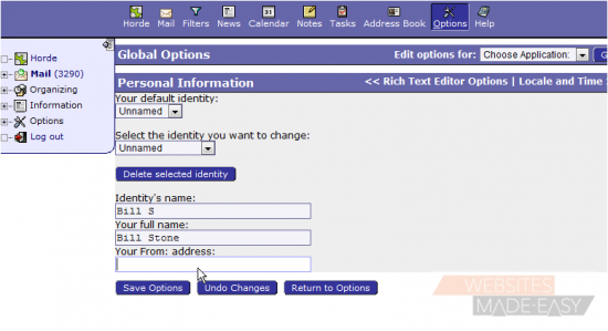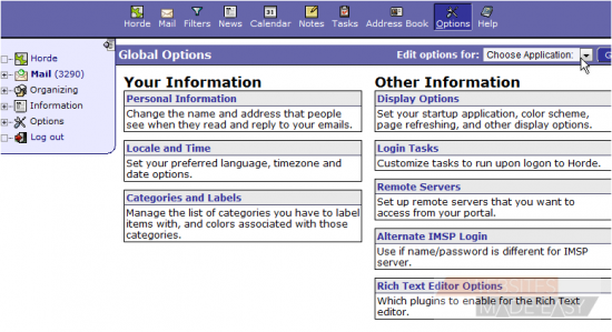 This tutorial assumes you've already logged in to Horde webmail. Now let's learn how to edit our personal information