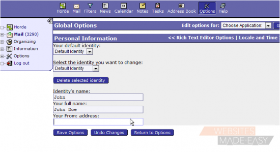 3) Enter Identity's name here, as well as your full name, and your email address. When finished, click Save Options.