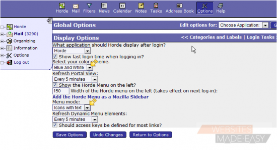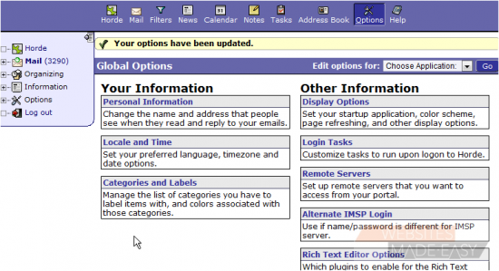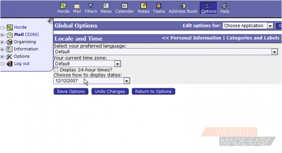 This is the end of the tutorial. You should now know how to change several of the Global Options in Horde. Click here to watch the Video Tutorial.