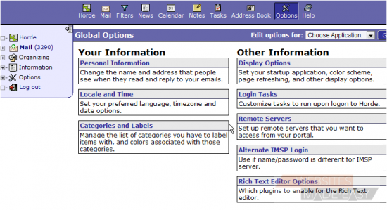 This tutorial assumes you've already logged in to Horde webmail. Now let's learn how to configure our global options.