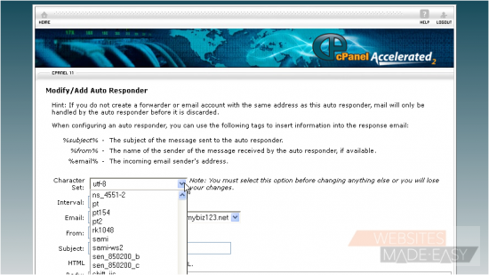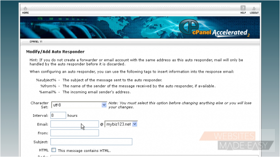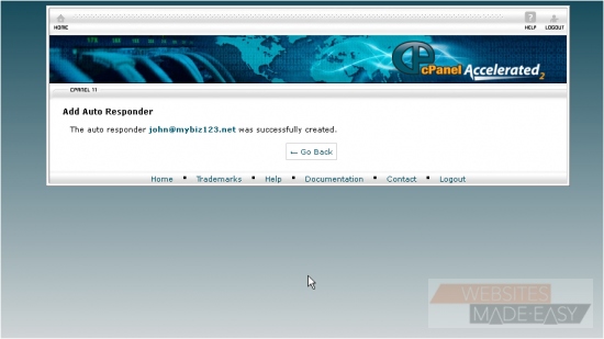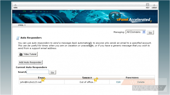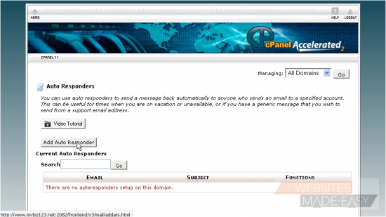 This is where you create auto-responders for your email addresses. Autoresponders send messages back automatically to anyone who sends an email to a specified account