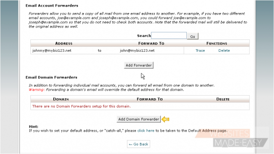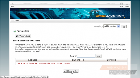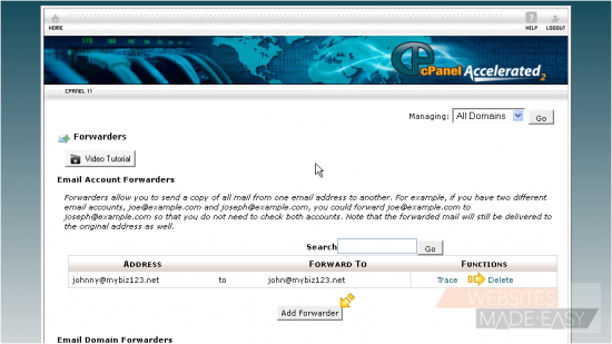 This is the end of the tutorial. You now know how to create email forwarders for automatically forwarding email from one address to another. Click here to watch the Video Tutorial.