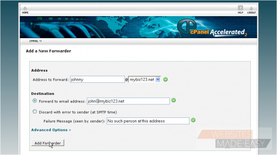That's all there is to it! The email forwarder has been setup and will start working immediately