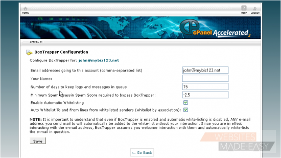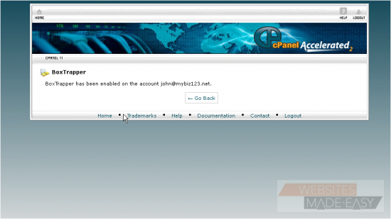 4) BoxTrapper has been enabled for this address. Click Go Back