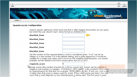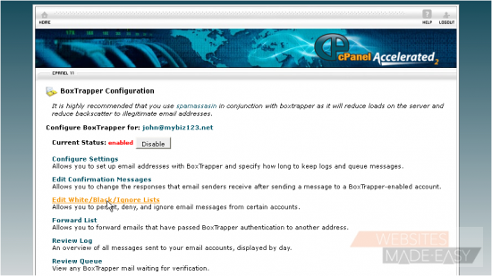 11) From here you can setup your blacklist with email addresses you KNOW are spam...
