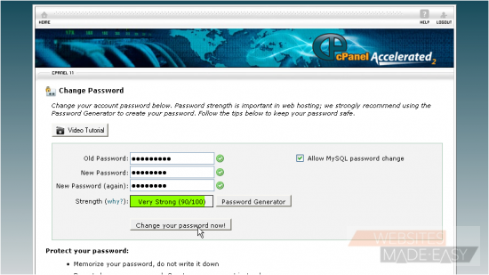 That's it! Your cPanel password has been changed. You'll now need to use this new password to login to cPanel, so be sure to keep it in a safe place.