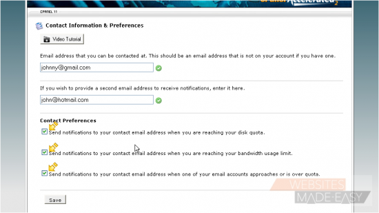 4) You can choose to be notified when you're reaching your disk quota, bandwidth usage limit, or email account quota.