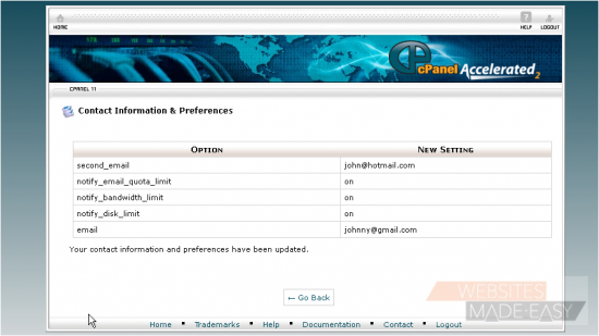 That's it! We've successfully updated our contact information, and will be notified by email when getting close to our storage and bandwidth limits