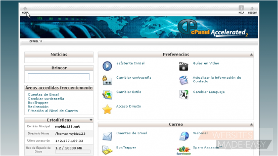 Now when you navigate through cPanel, you'll notice that the language used has been translated to the newly selected language