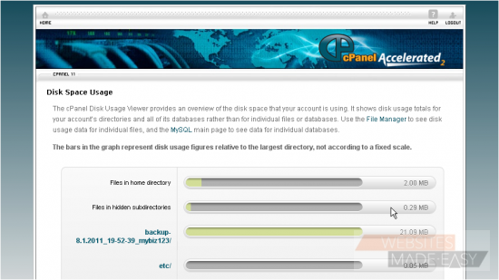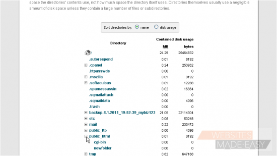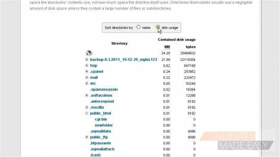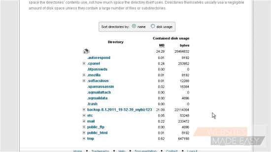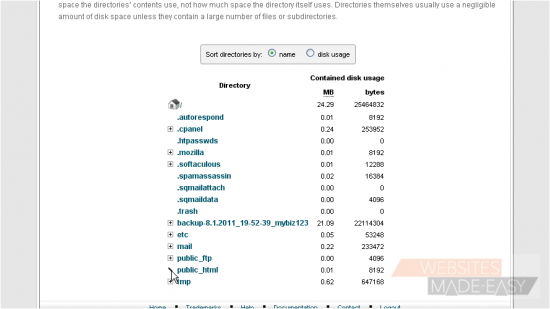 From here you can see how much storage space (or disk space) is being used by each directory and sub-directory in your account