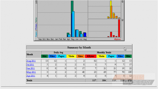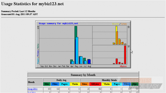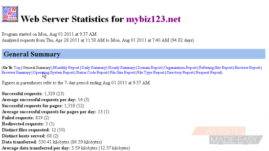 This is the main Webalizer page, from where you can access visitor stats broken down in several different ways