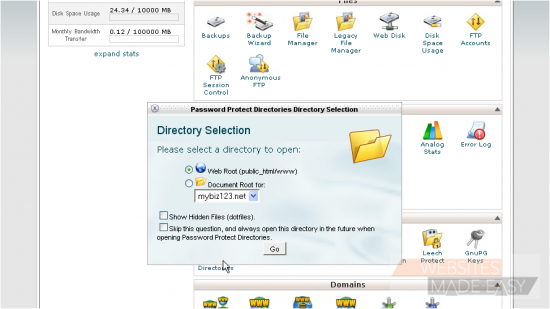 Now let's learn how to password protect a directory, so that people will need a password to view web pages within it
