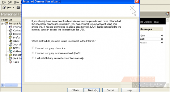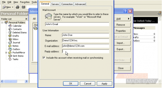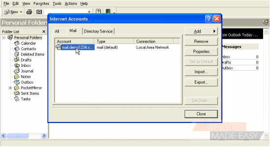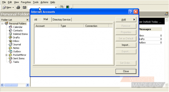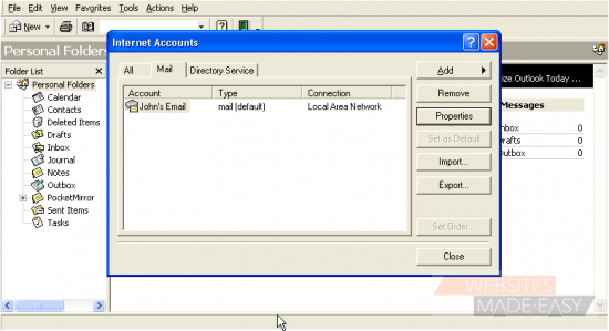 Now let's learn how to setup that new email account in Outlook 2000, so you'll be able to send/receive emails to/from that new email account from here