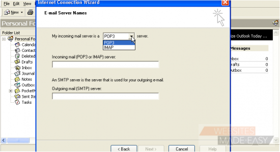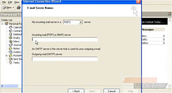 Now you have to enter your Incoming (POP3) and Outgoing (SMTP) server names
