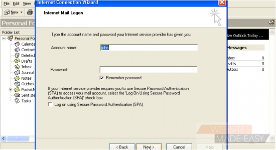 12) Now enter the email username as provided to you by your hosting provider..... this may be the entire email address (john@demo1234.com), or just the username prefix (john)