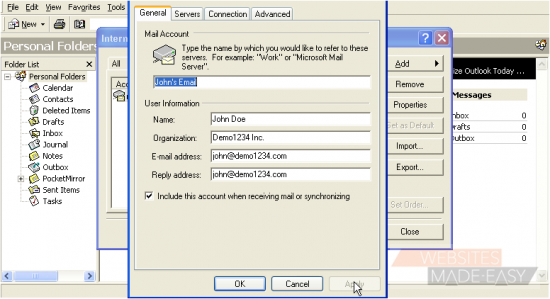 That's it! We've successfully setup an email account, and can now start sending and receiving emails to and from that account, from Outlook 2000