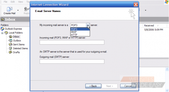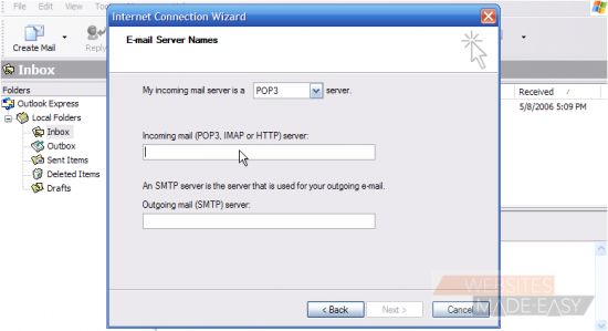 Now you have to enter your Incoming (POP3) and Outgoing (SMTP) server names