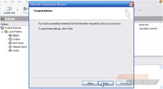 That's it! We've successfully setup an email account, and can now start sending and receiving emails to and from that account, from Outlook Express