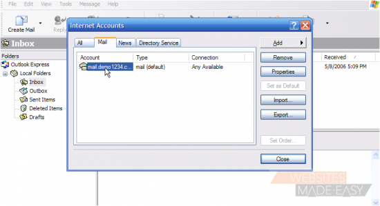 Now let's learn how to setup that new email account in Outlook Express, so you'll be able to send/receive emails to/from that new email account from here