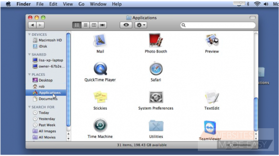 4) Click Applications in the left margin, then double click the Mail icon.