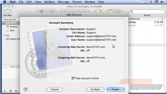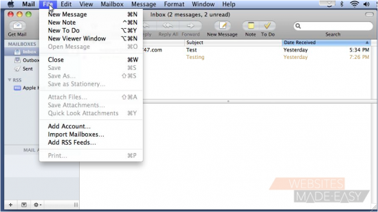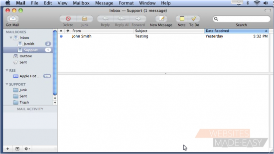 9) That's it! Here is the mailbox we just set up... and all the messages on the server show up here.