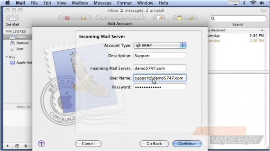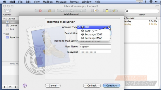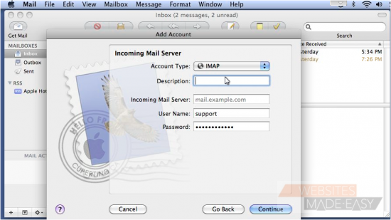 4) Then type a description, and enter the Incoming Mail Server as provided by your host. Note that this can be anything from mail.example.com to just the domain name.