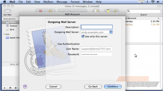 6) In order to send mail from this address, we need to set up the Outgoing Mail Server. Enter a description, then type the Outgoing Mail Server here.