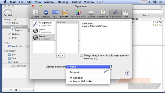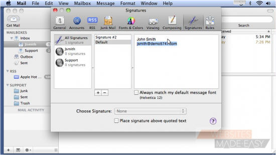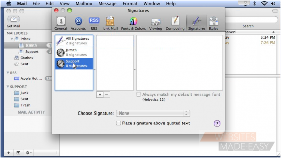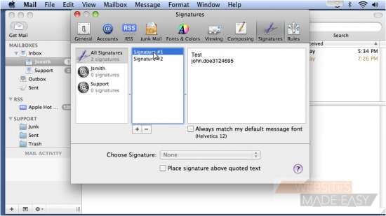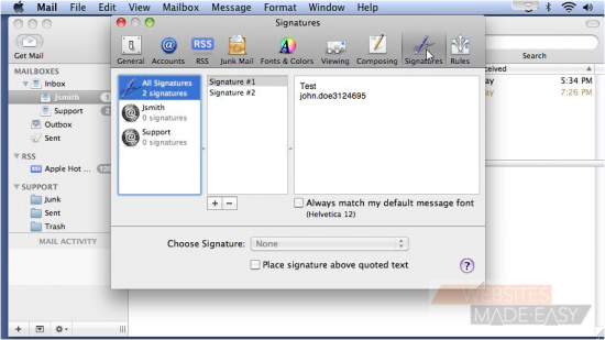 7) It's possible to create different signatures for each e-mail address you have added to Mail instead of using the same one for all accounts. Click an account...