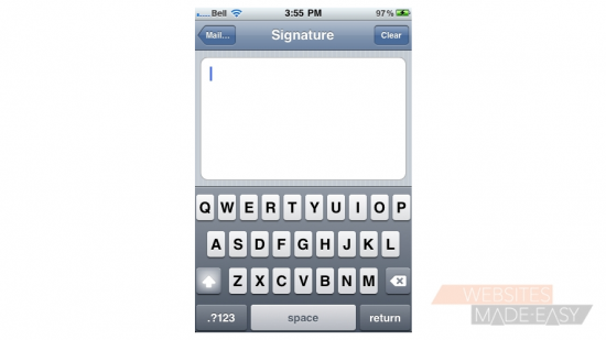 4) Enter your signature here. It should be something that you want automatically added to the end of the emails you send from your iPhone.