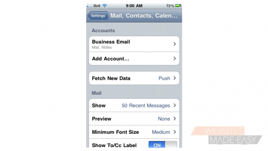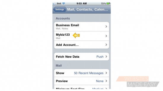 15) If you have multiple email accounts setup in your iPhone, they'll all be listed here. Select the email account we just setup...