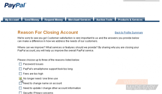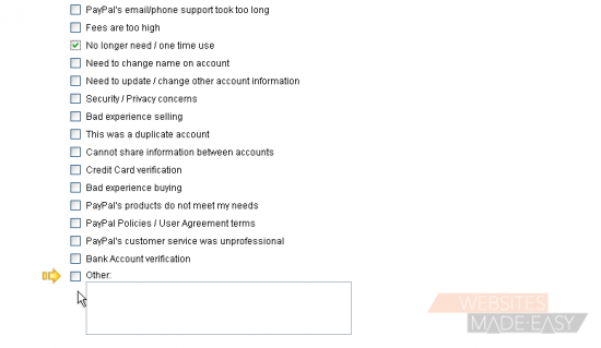 If you do not see any reasons in the list why you are closing your account, you can select Other and type in a reason