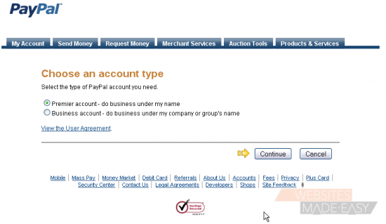 Your personal account will automatically be upgraded to a premier account once you click the Continue button