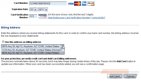 If you have already added the billing address into your profile, you can select it from the drop-down list. Otherwise, you will need to add a new address