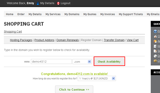 6) Click Check Availability