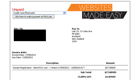 This is the invoice for the domain we just registered