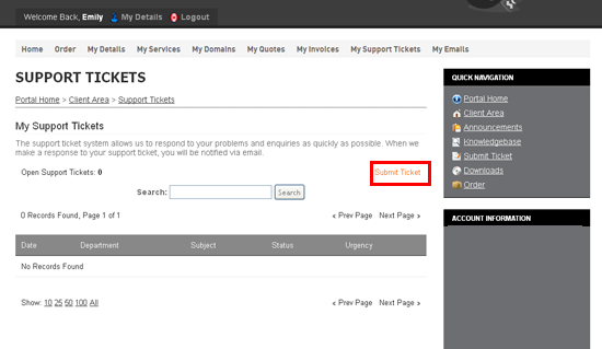 2) Then click Submit Ticket