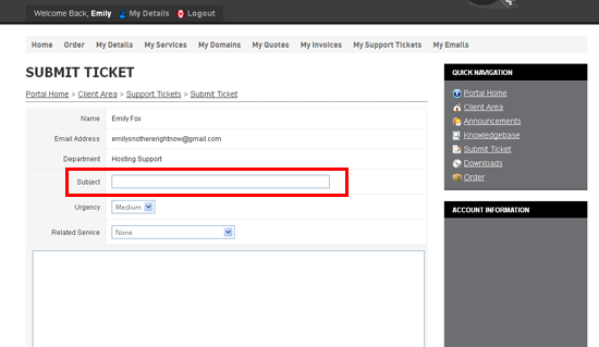 4) Enter a Subject for the ticket here