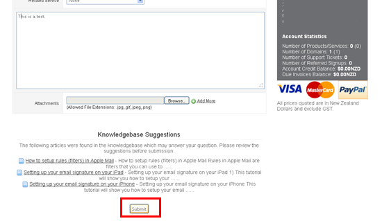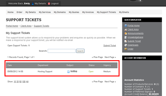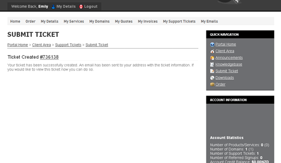 That's it! We've successfully created a support ticket, and a copy of the ticket has also been emailed to us
