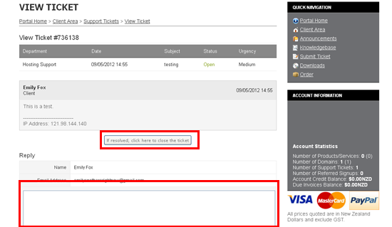 8) We can add more details to the ticket by typing them here... or we can mark the ticket as closed by clicking here